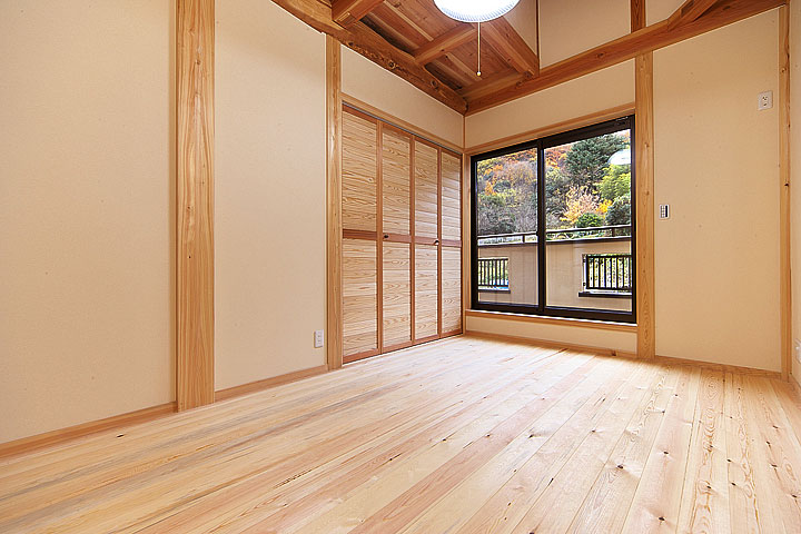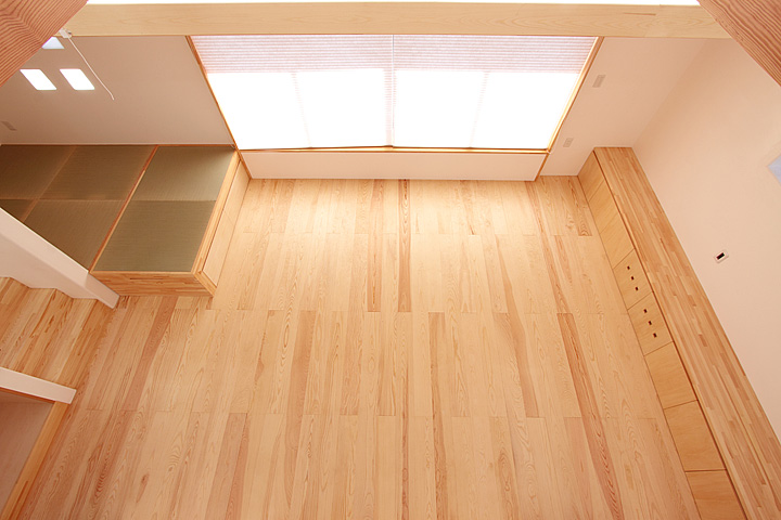 - ※写真は南部赤松(ナンブアカマツ)無垢フローリングの施工例(写真をクリックすると拡大表示します)。