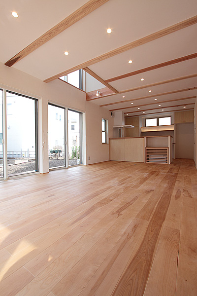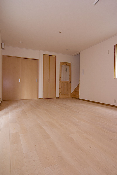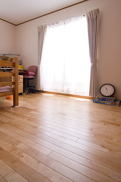 ▲バーチ(カバ)床暖房対応フローリング(節あり)施工例