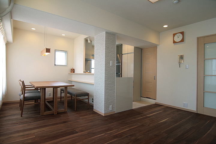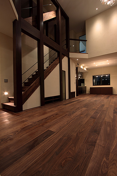 ブラックウォールナットのフローリングはとてもシックな空間を演出してくれる事でしょう。
