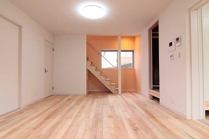 無塗装、UNI、節なし(品番:MP0010)。スキップフロアの階段部分に