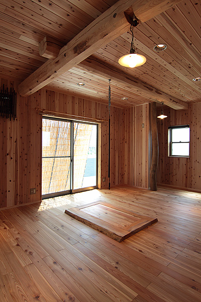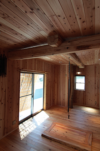 壁・天井 = 杉(スギ)羽目板…無塗装・一枚物・節あり(品番:SG1001)