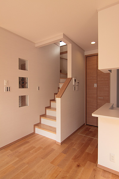 無塗装、UNI、節なし(品番:MP0010)。スキップフロアの階段部分に