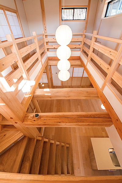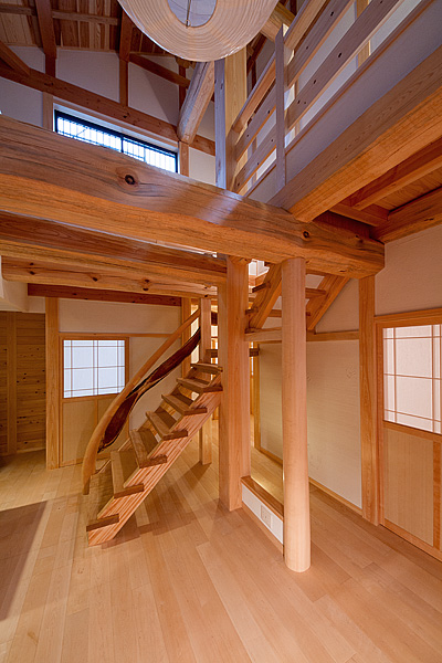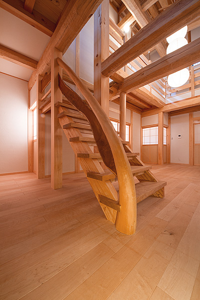 無塗装、UNI、節なし(品番:MP0010)。スキップフロアの階段部分に