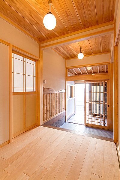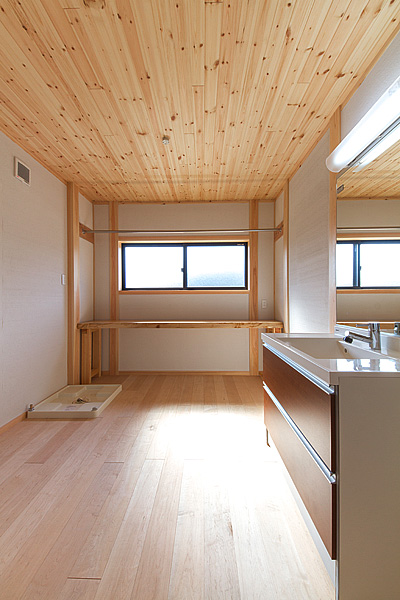 天井にはパイン羽目板(品番:PN1003)を使用。 -