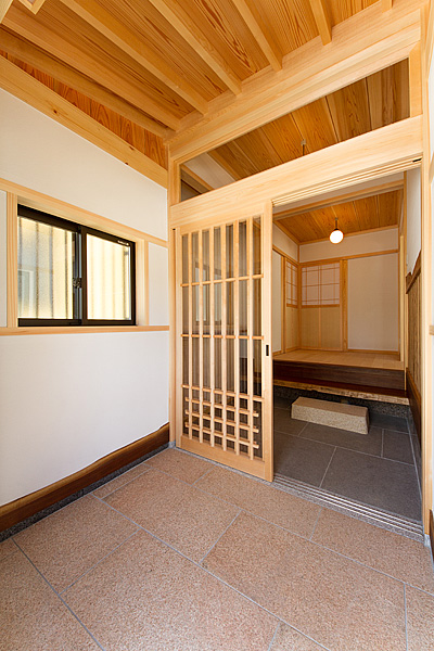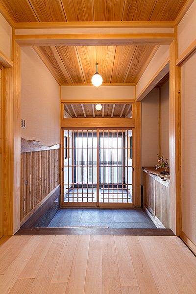 玄関框に板屋カエデ(メープル)の上框(品番:QM0203)を使用。 -