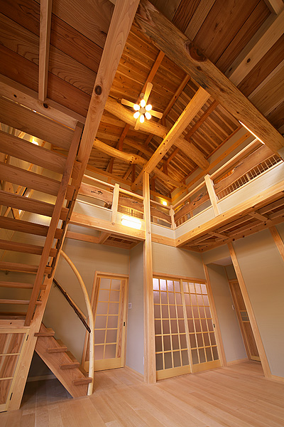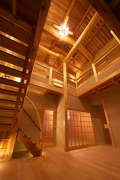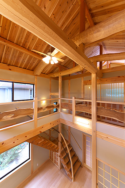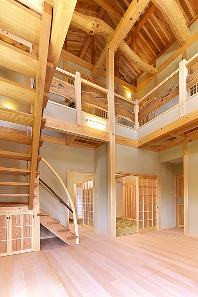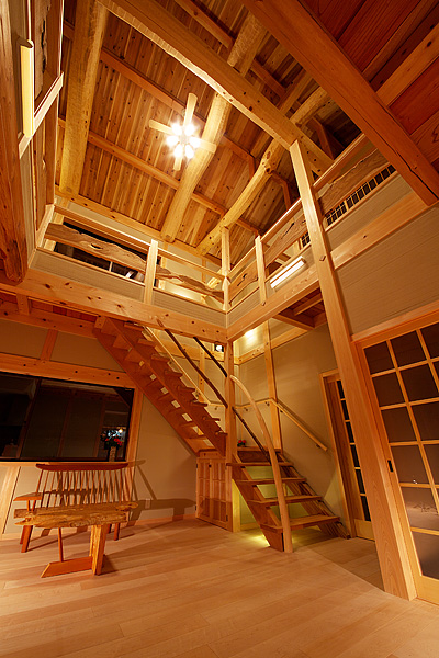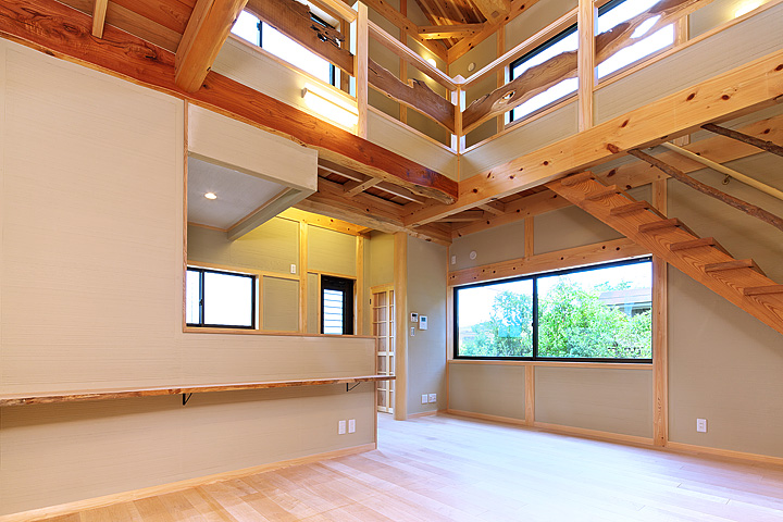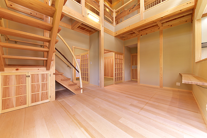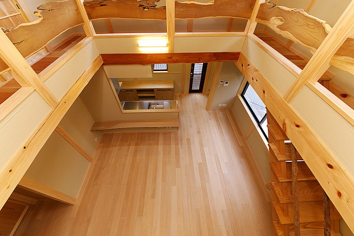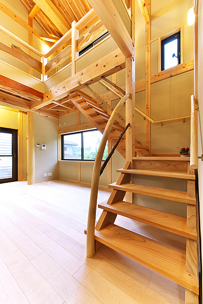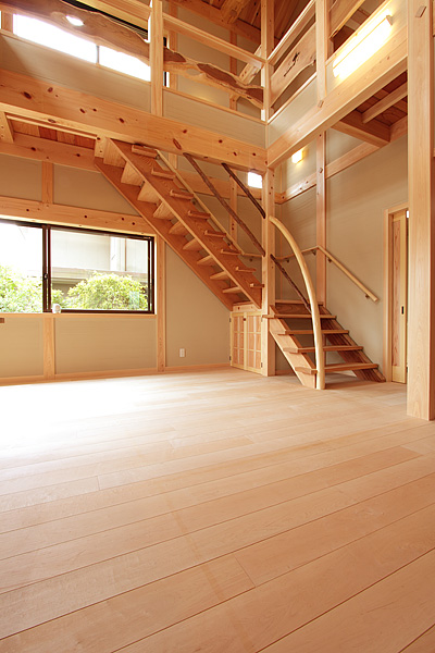 無塗装、UNI、節なし(品番:MP0010)。スキップフロアの階段部分に