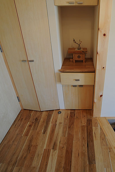 壁には同フローリングの節あり(WN0036)に塗装を施したものを使用。 -
