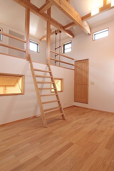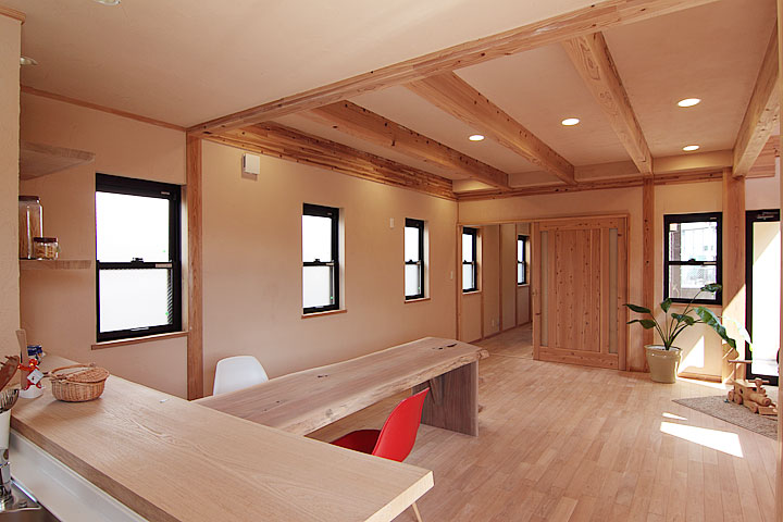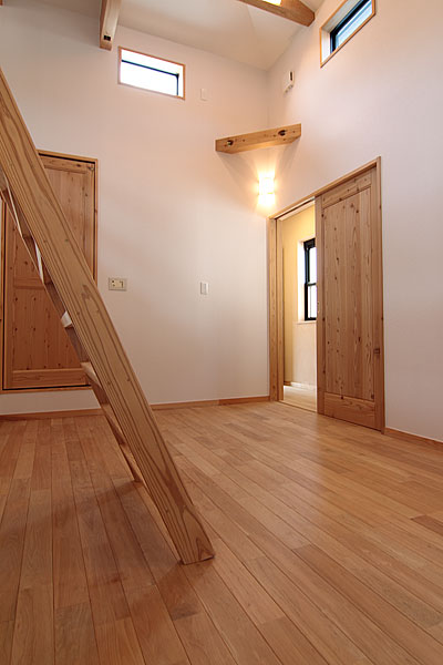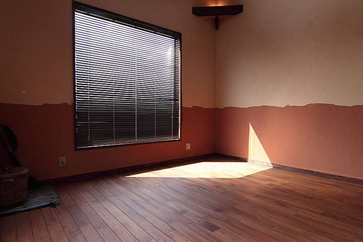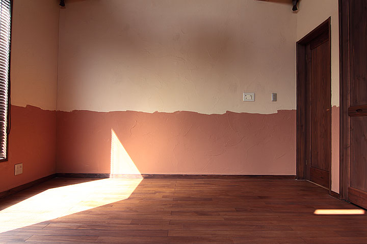 壁には同フローリングの節あり(WN0036)に塗装を施したものを使用。 -