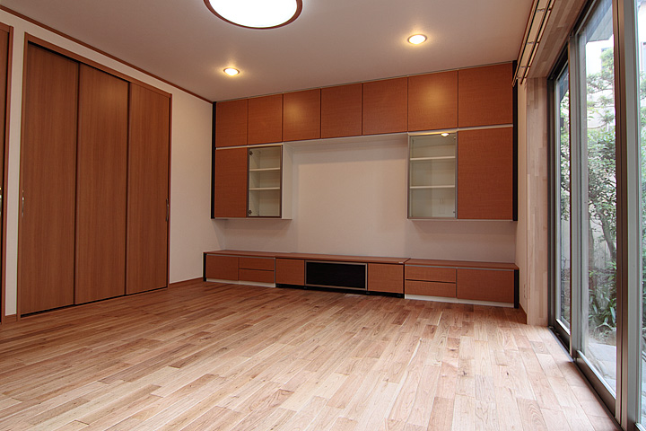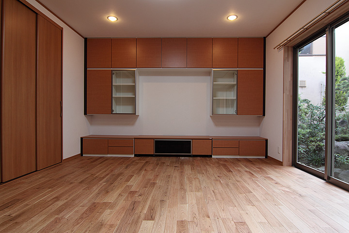 壁には同フローリングの節あり(WN0036)に塗装を施したものを使用。 -