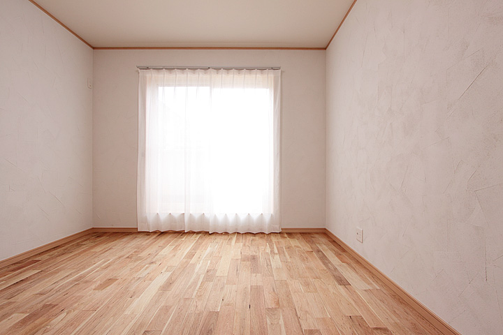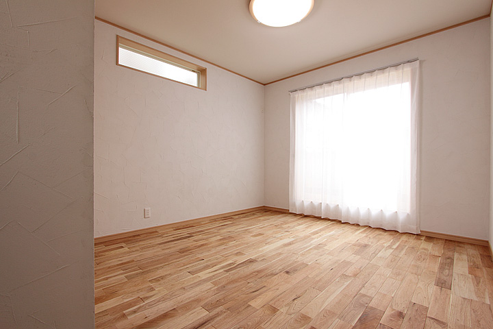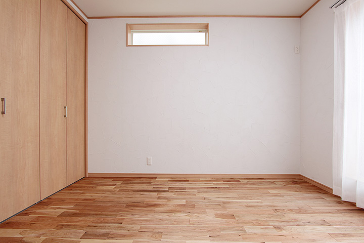 壁には同フローリングの節あり(WN0036)に塗装を施したものを使用。 -