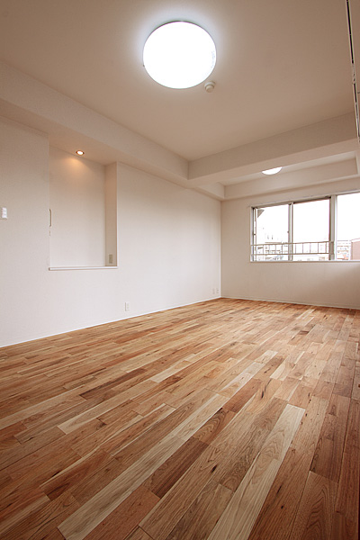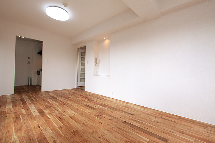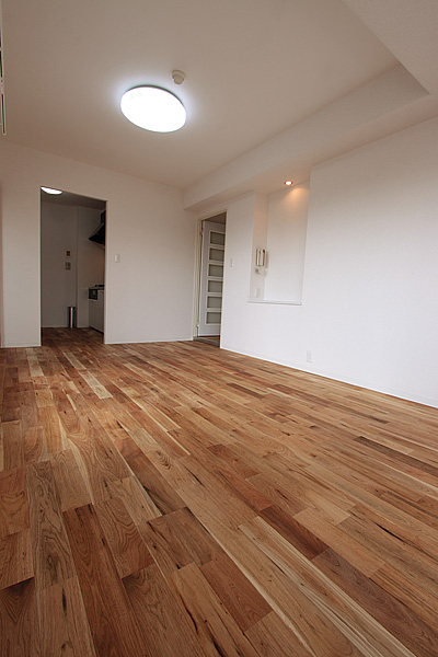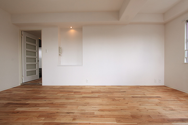 壁には同フローリングの節あり(WN0036)に塗装を施したものを使用。 -
