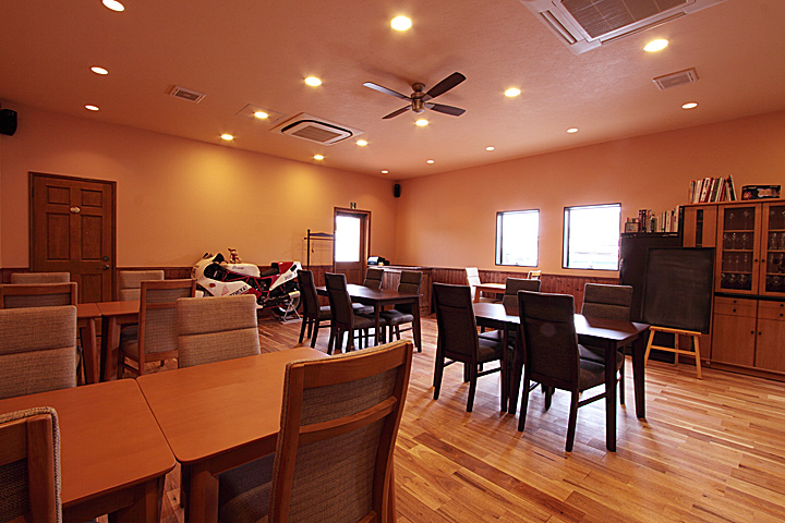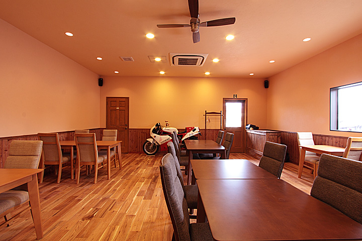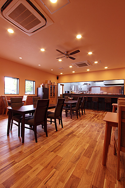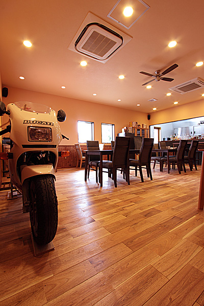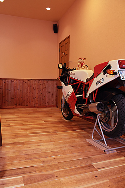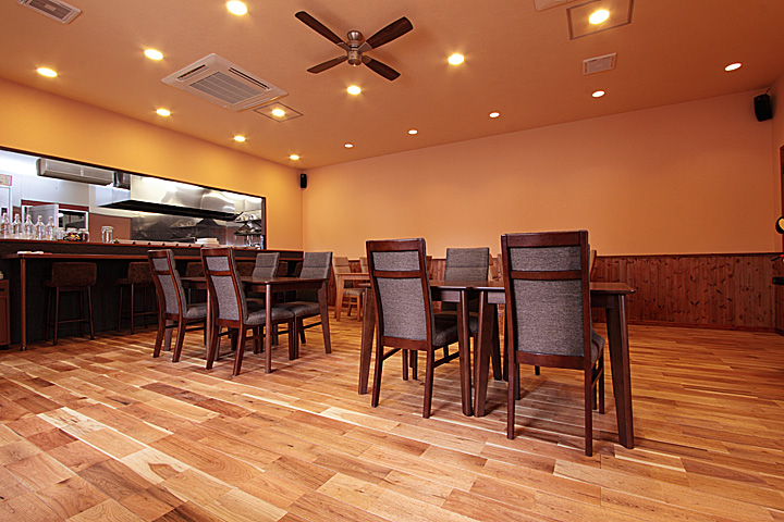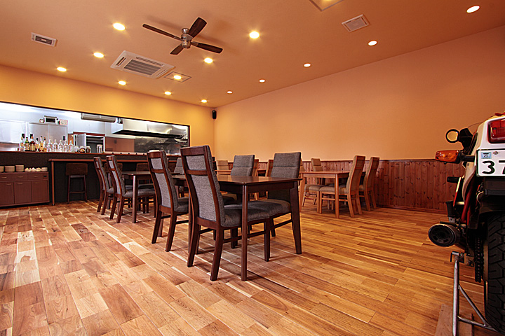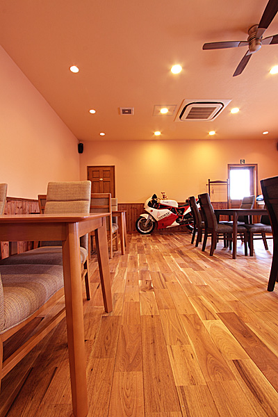壁には同フローリングの節あり(WN0036)に塗装を施したものを使用。 -
