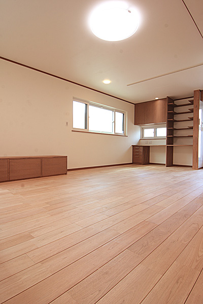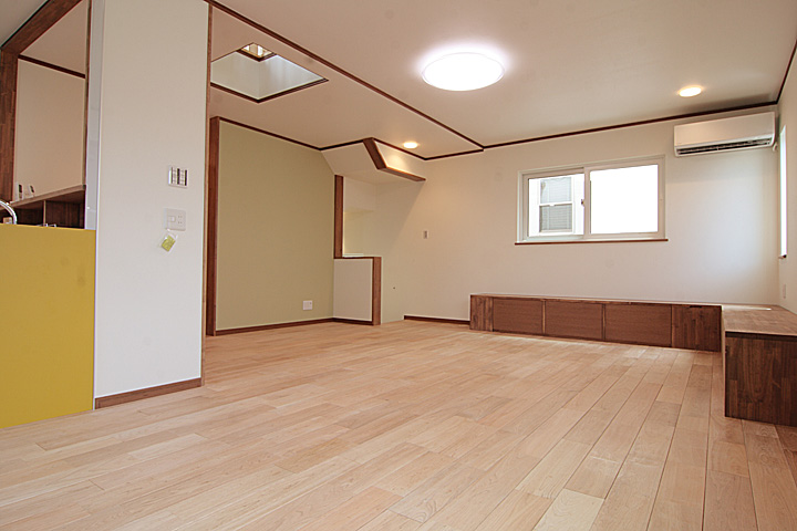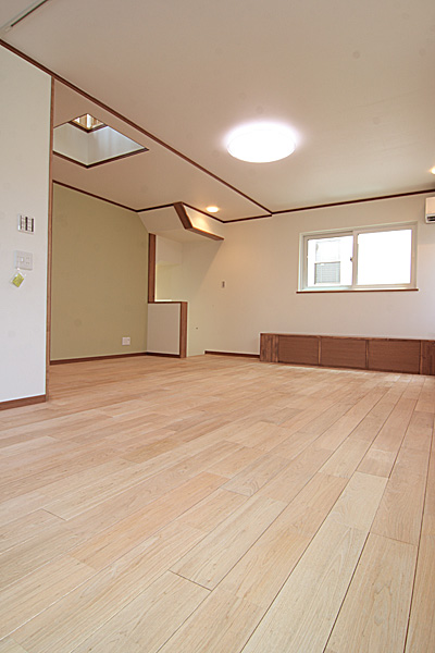 壁には同フローリングの節あり(WN0036)に塗装を施したものを使用。 -