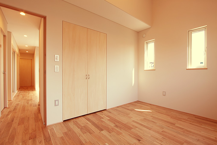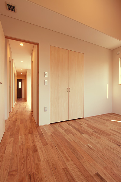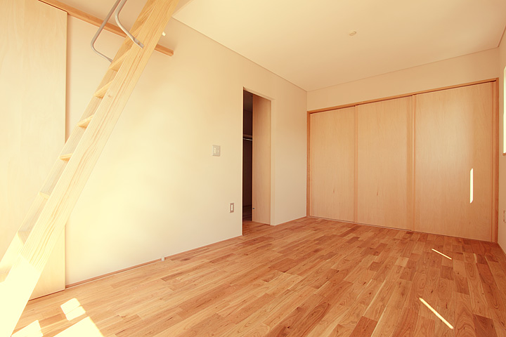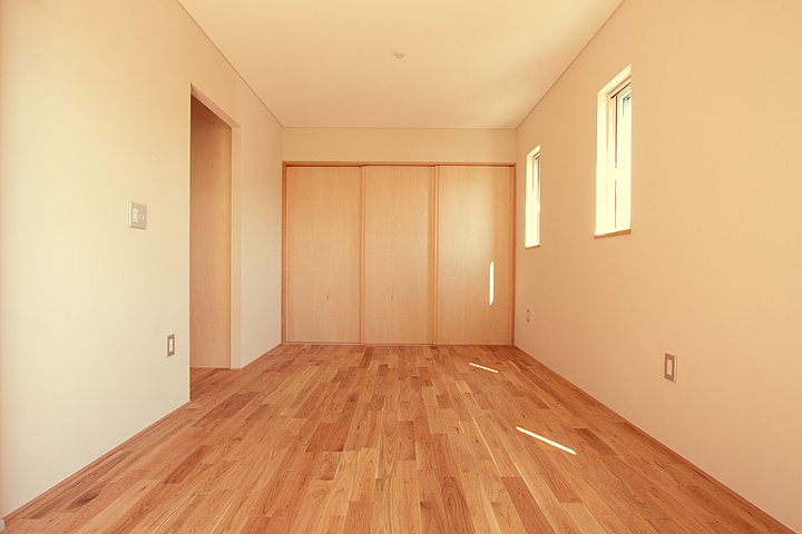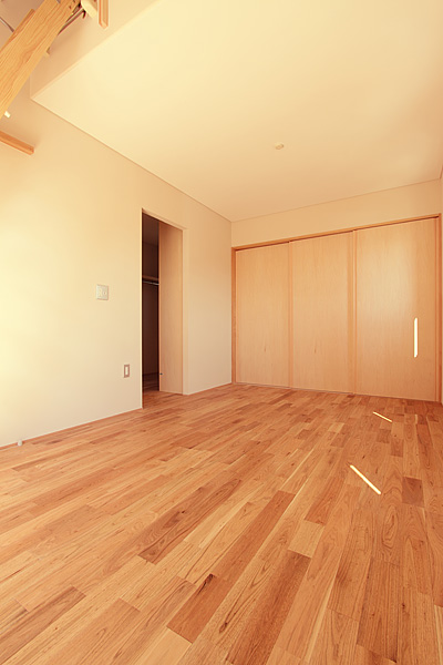 壁には同フローリングの節あり(WN0036)に塗装を施したものを使用。 -