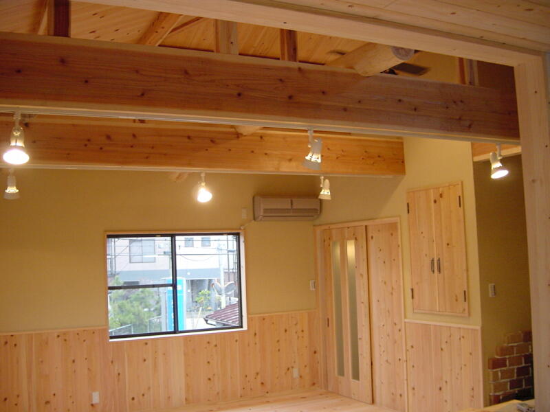 内装には天然素材を使用するように心がけました。押入れの中までも桧羽目板です。