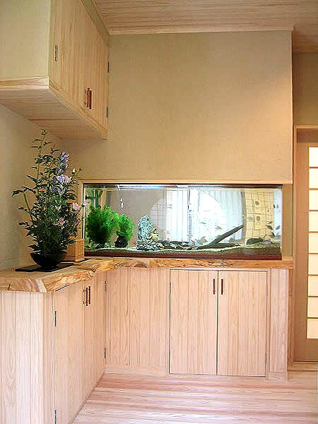 リフォーム前は、ご主人のコレクション置場でしたが、リフォームして水槽を設置。